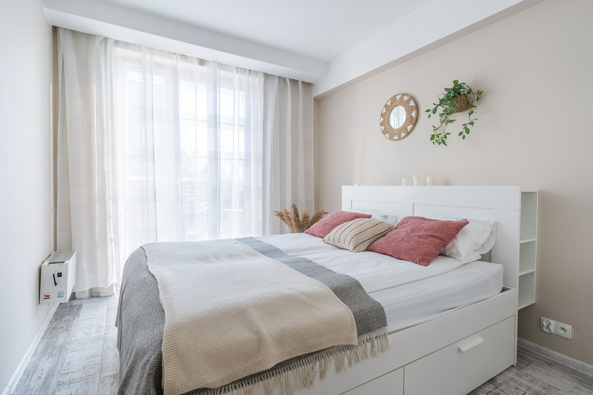 The bedroom is very cozy and is located in the wide, comfortable queen size bed and a spacious wardrobe.