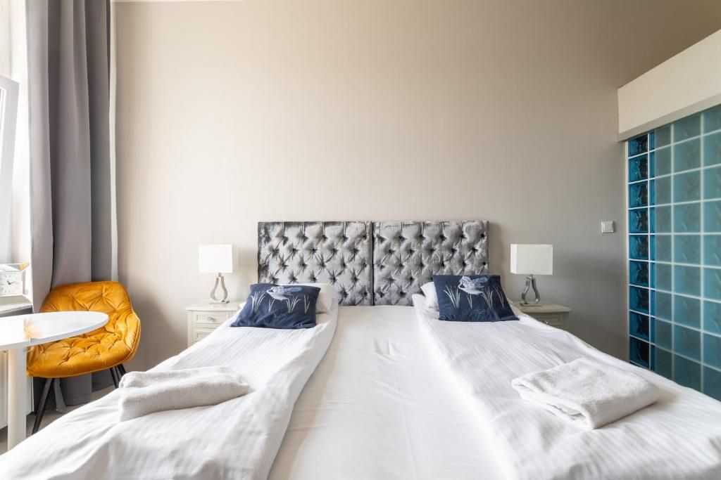 Apartament o powierzchni około 20 m² został zaprojektowany z myślą o wygodnym pobycie dwóch osób. Funkcjonalny układ wnętrza sprawia, że mimo kameralnego metrażu przestrzeń jest komfortowa i sprzyja wypoczynkowi po dniu spędzonym na plaży lub spacerach po mieście.