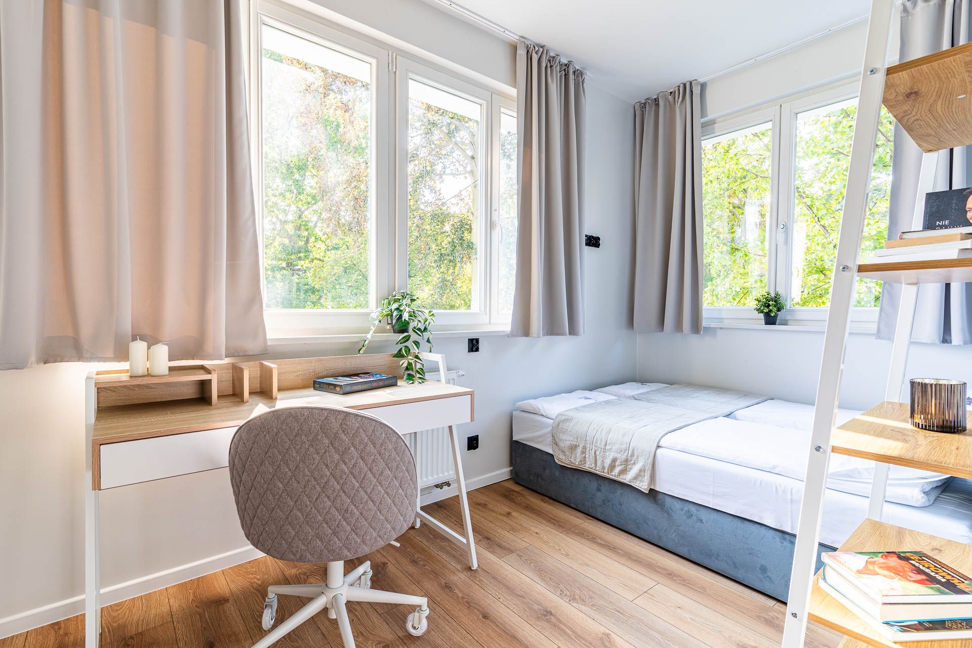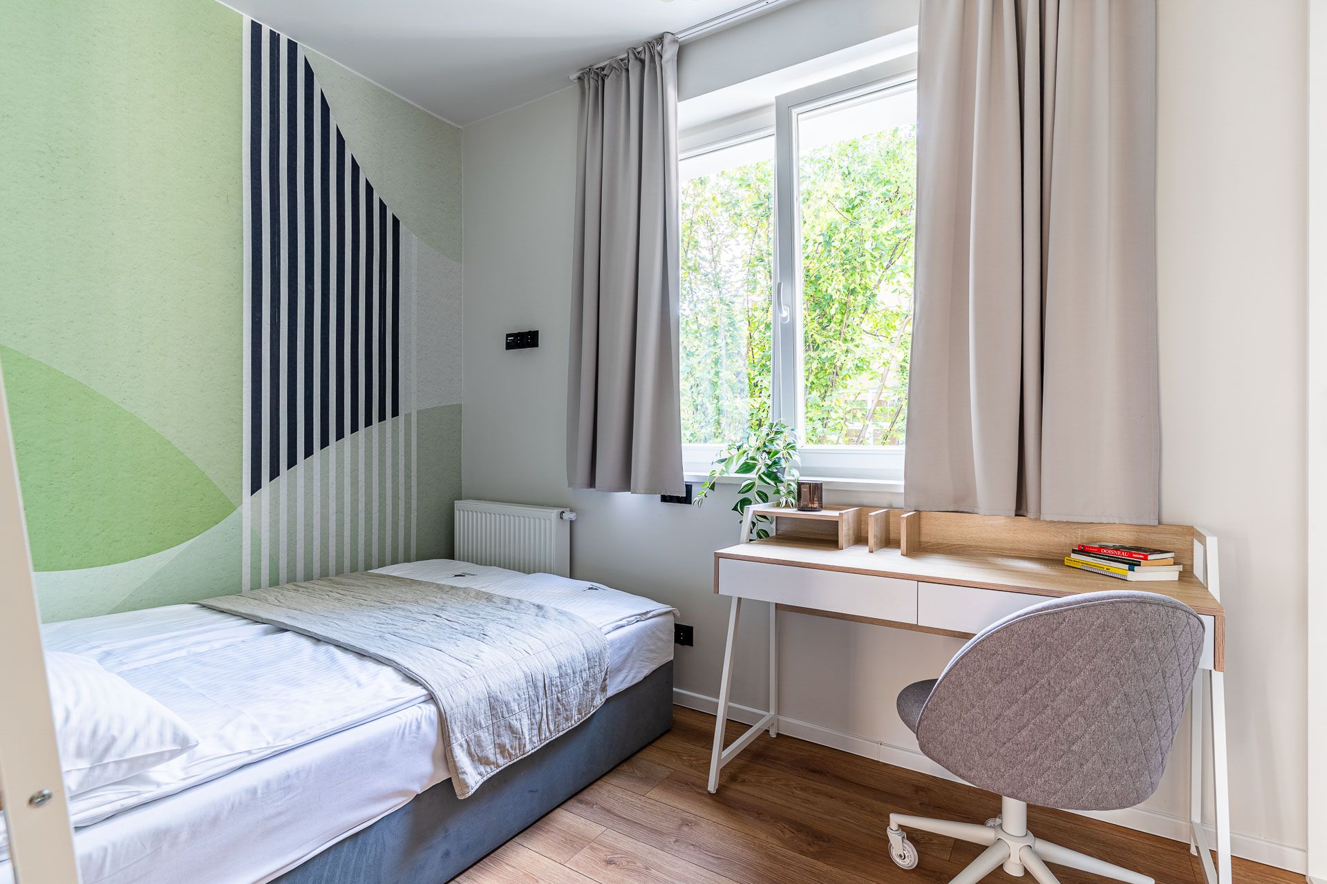 Natura I to apartament stworzony z myślą o komforcie i relaksie. Przestronny salon sprzyja wspólnemu spędzaniu czasu, a trzy oddzielne sypialnie gwarantują prywatność i wygodę każdemu z gości. To idealna opcja dla rodzin z dziećmi lub paczki znajomych planujących wspólny wyjazd do Sopotu.