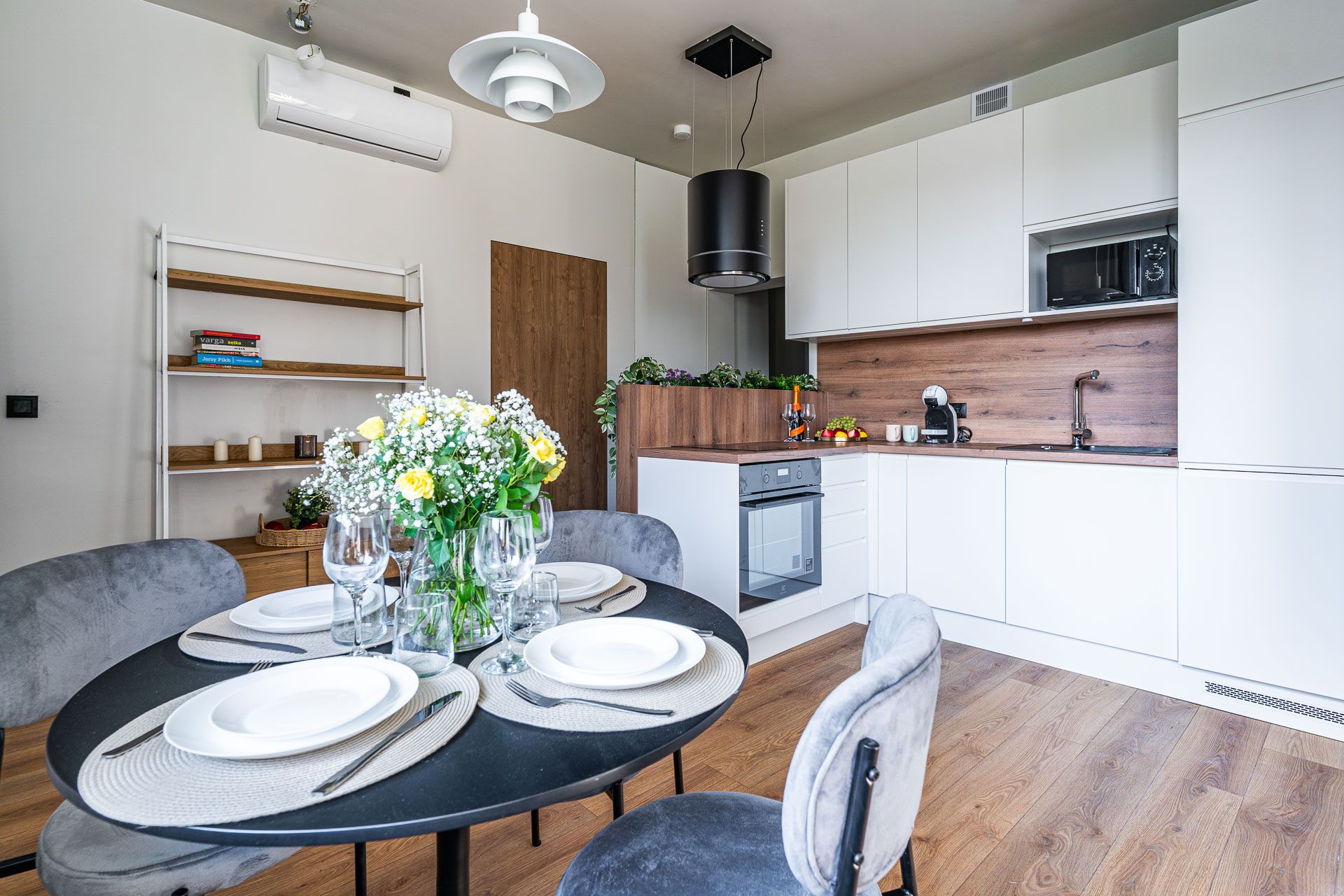 w pełni wyposażona kuchnia (zmywarka, ekspres, czajnik, naczynia)