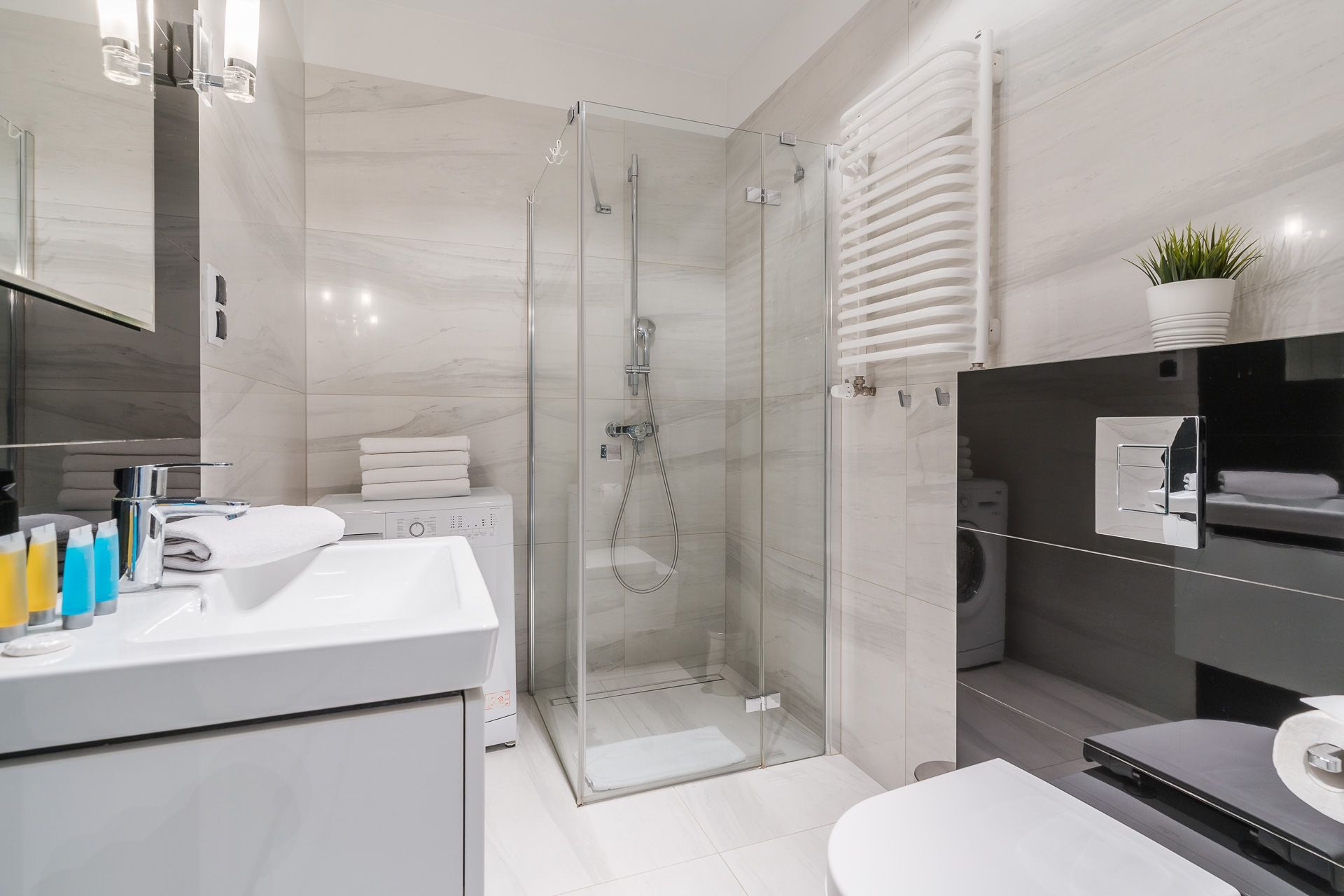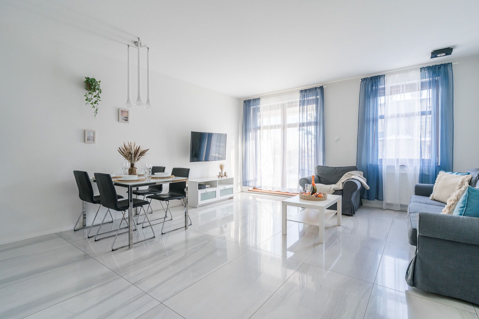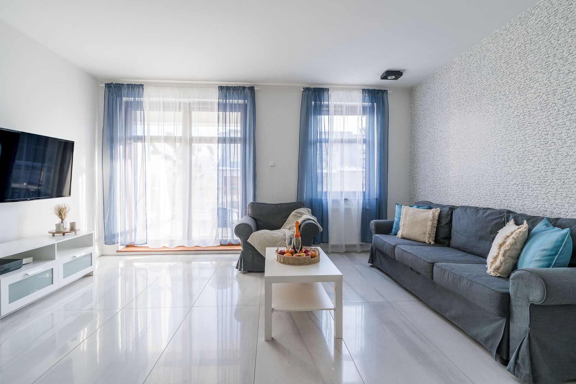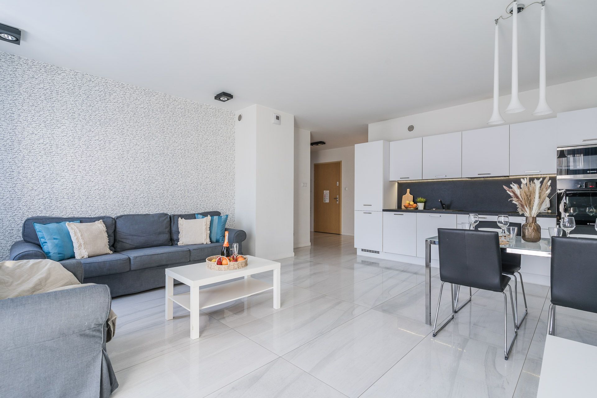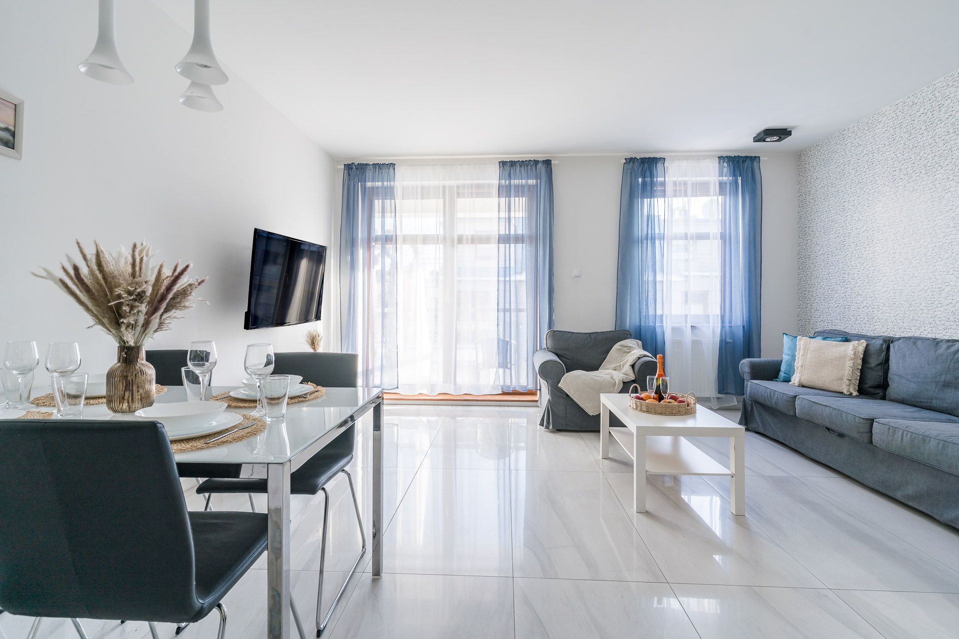 Apartament o powierzchni 57 m2 przeznaczony jest dla 4 osób. Apartament urządzony jest w nowoczesnym stylu. Salon jest bardzo przestronny oraz słoneczny.